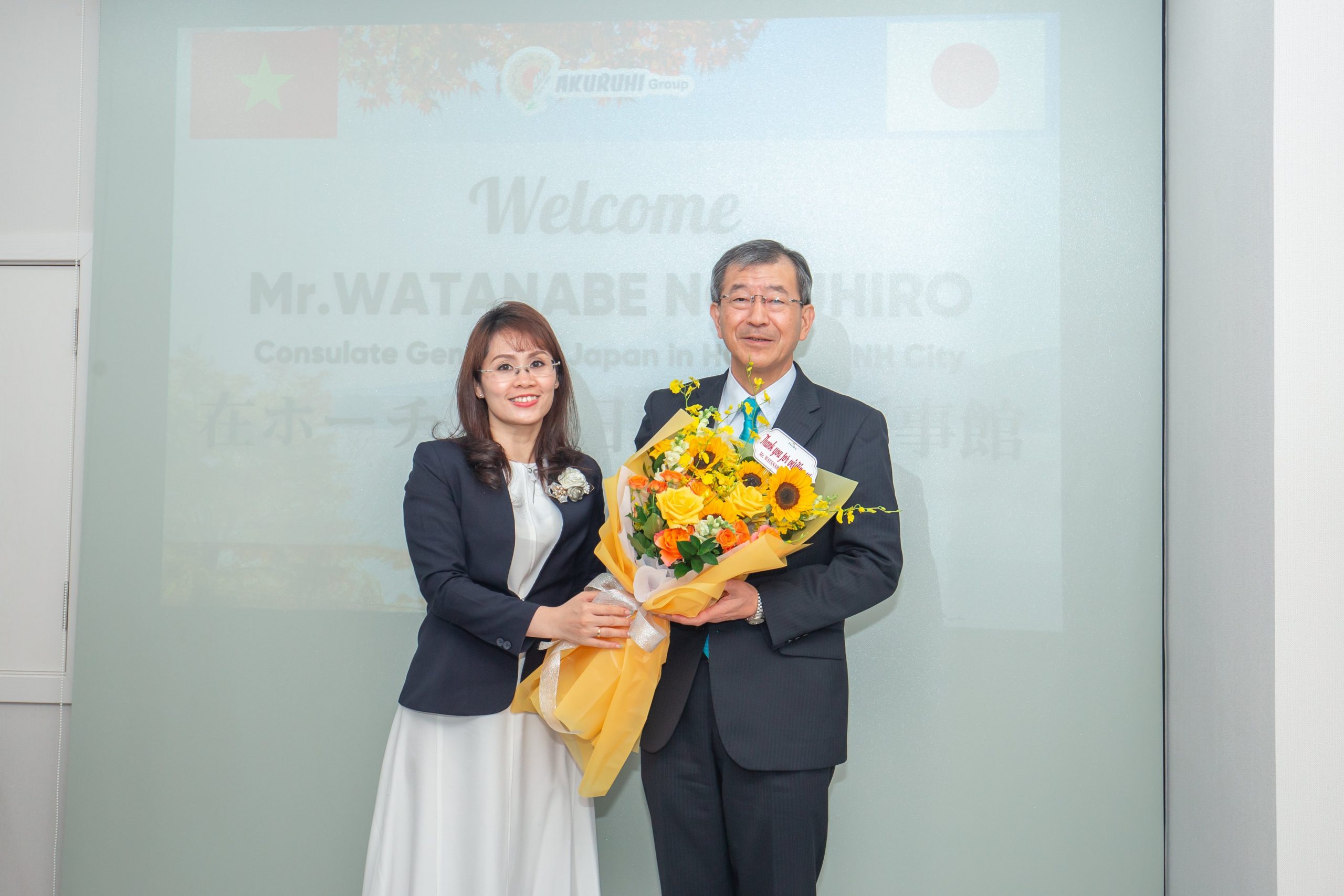 “Tôi rất vui mừng và vinh dự đón tiếp ngài Watanabe Nobuhiro tổng lãnh sự quán Nhật Bản tại TP.HCM và bà Morimoto Emiko phòng kinh tế lãnh sự đến chào xã giao cũng như kết nối và chia sẻ, tìm hiểu về hoạt động của công ty Akuruhi.